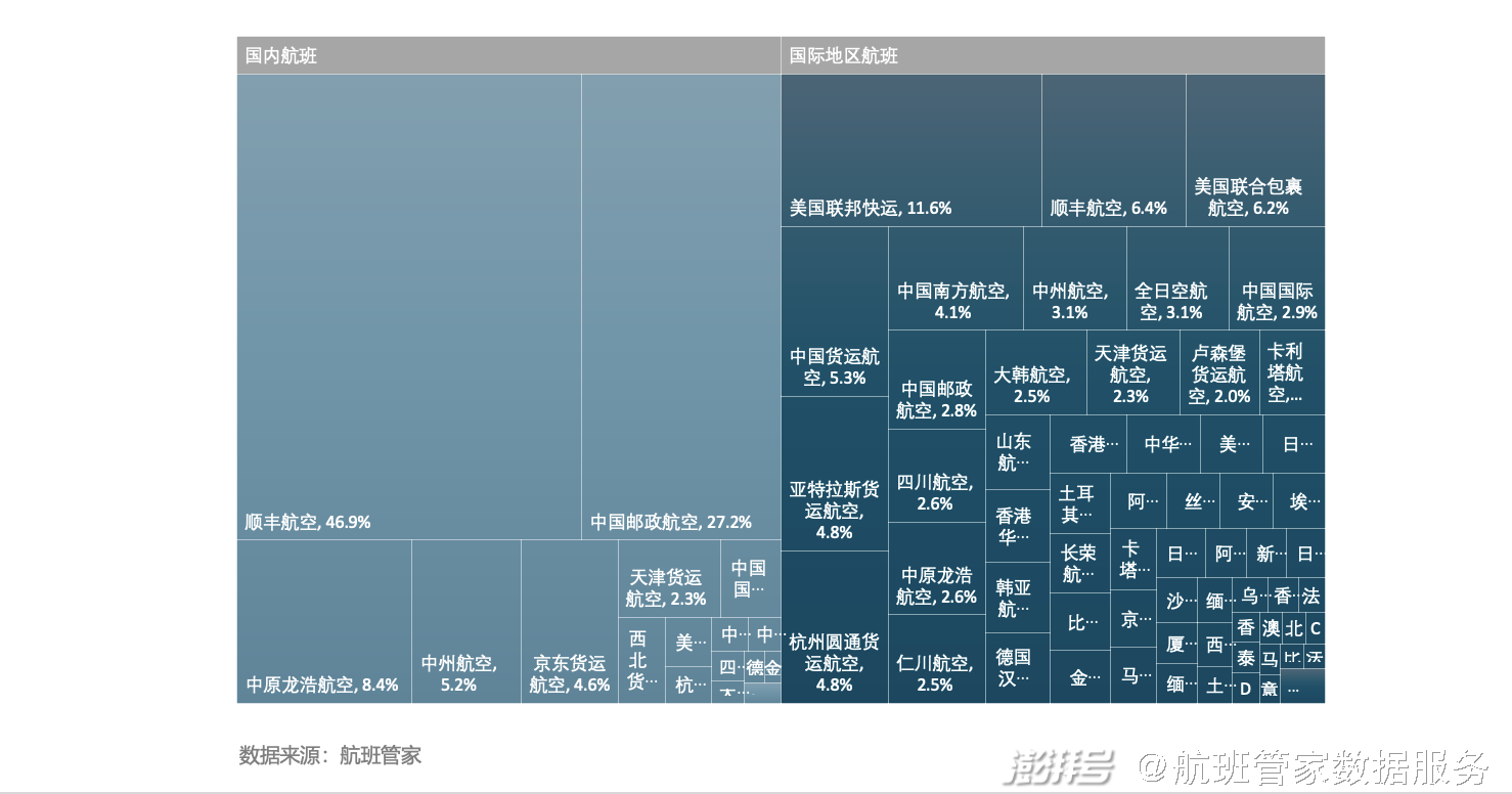 2、顺丰&邮政占国内航班74.1%,国际/地区市场境内航司占比41.3%